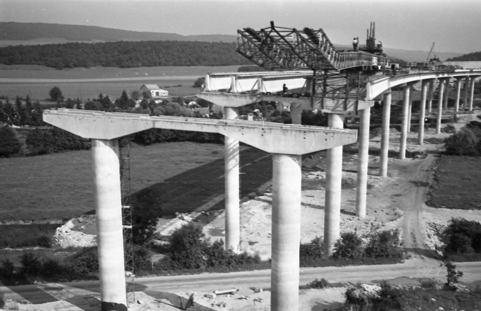 Le viaduc de Pont-d'Ouche lors de sa construction en mai 1970